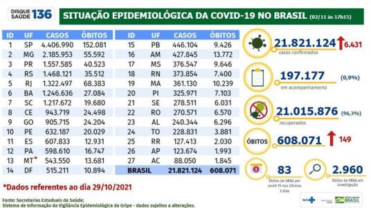 Repro­dução: bole­tim 02.11.2021 — Min­istério da Saúde