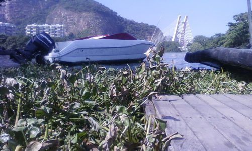 As gigogas se despren­der­am de uma eco-bar­reira de con­tenção na Lagoa da Tiju­ca, na últi­ma sex­ta-feira (6) e foram lev­adas através do que­bra-mar da Bar­ra da Tiju­ca, entra­da para o mar aber­to para uma grande exten­são da orla.